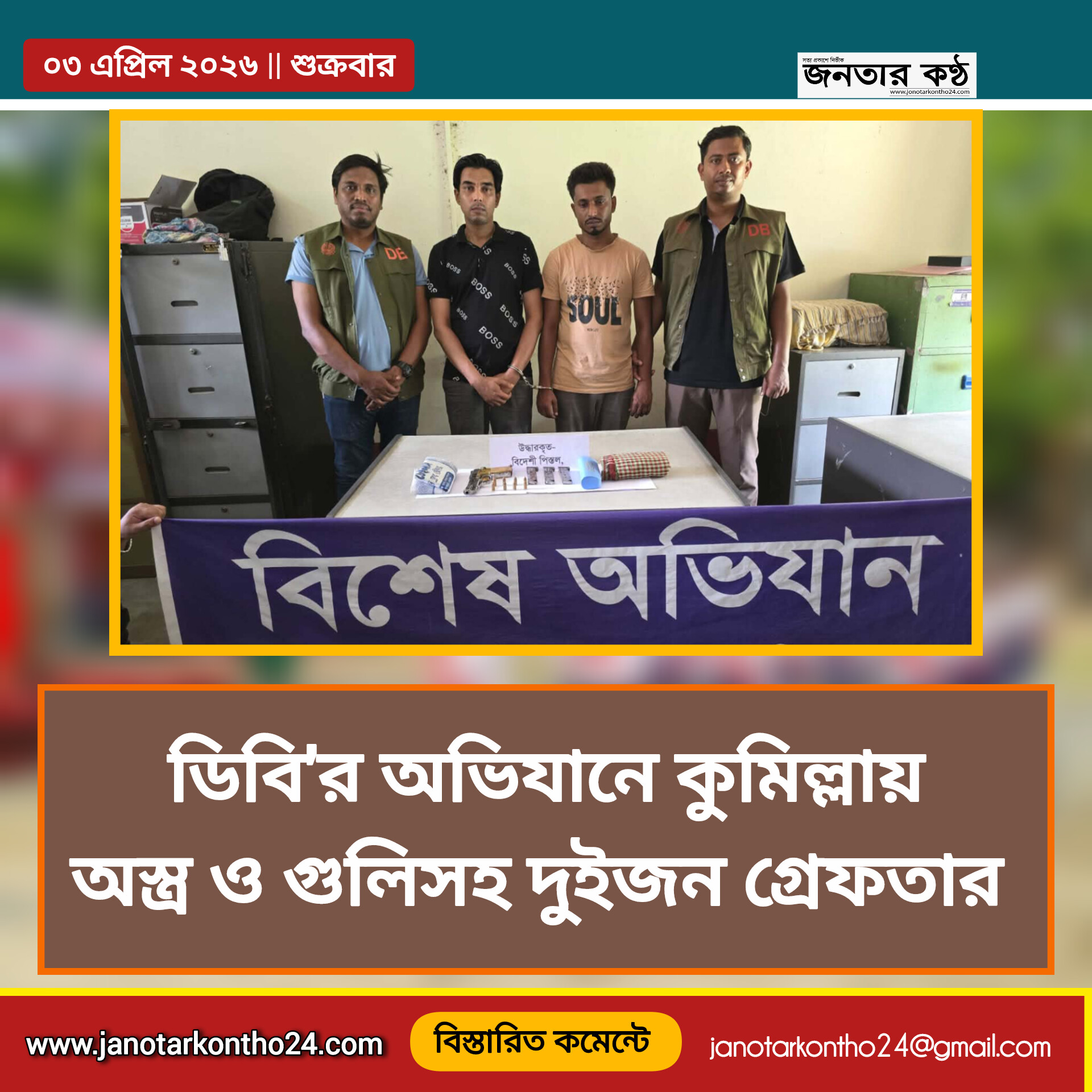 কুমিল্লায় অস্ত্র ও গুলিসহ দুইজনকে গ্রেফতার করেছে জেলা ডিবি পুলিশ।