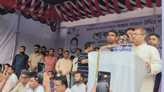 প্রধান অতিথির সংসদ সদস্য নুরুল আমিন এমপি বক্তব্যের শুরুতে যুবদল নেতা কামাল উদ্দিনের আত্মার মাগফেরাত কামনায় দোয়া মুনাজাত করেন। দোয়া মুনাজ শেষে প্রধান অতিথির বক্তব্যে তিনি বলেন, কামাল উদ্দিন আমার অত্যন্ত স্নেহের ও বিশ্বস্ত কর্মী ছিলো। থাকে হারিয়ে ফেলেছি কামাল আমাদের মাঝে নেই সেটা এখনো বিশ্বাস করতে পারছিনা । কামাল কে পরিকল্পিত হত্যা নাকি নিছক দুর্ঘটনা সেটা তদন্তের বিষয় উল্লেখ করে তিনি বলেন, আমরা এমন কোন মন্তব্য করবো না যাতে আমরা নিজেরা গুনাগার হওয়ার পাশাপাশি কামালের কবর আজাব হয়। যুবদল নেতা কামালের শোকসভা অনুষ্ঠানে কামালের পরিবারকে দাওয়াত না দেওয়ায় বক্তব্যের শেষে তিনি আয়োজক কমিটির সমালোচনাও করেন।